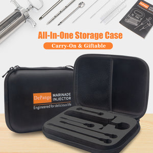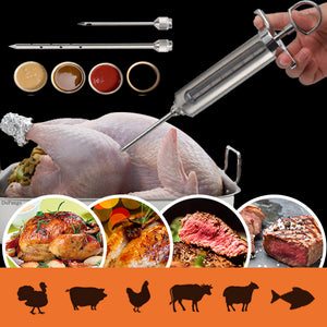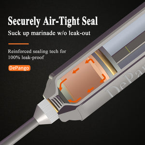 DePango Meat Injector, Stainless Steel Marinade Injector Flavor Syringe Kit with 2-oz Measurement Window for Smoker Food BBQ Grill, Cooking Turkey Chicken Steak Beef Brisket Pork-Chops, 3 Meat Needles