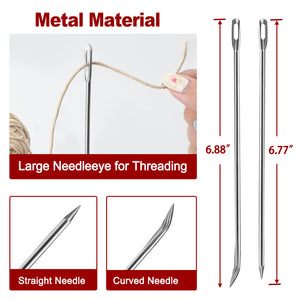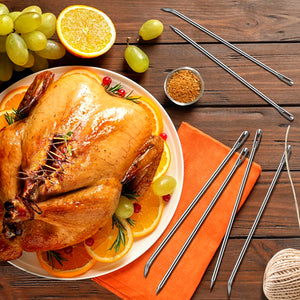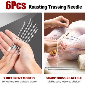 Meat Trussing Needles, Roasting Trussing Needles for Lacing Roast Turkey, Chicken, Pork Skin, Whole Hog, Lamb, and Rotisserie Pig; 3pcs Curved Needles and 3pcs Straight Needles; 6pcs in ALL