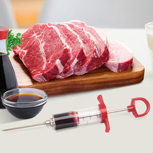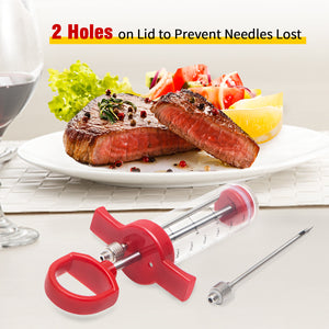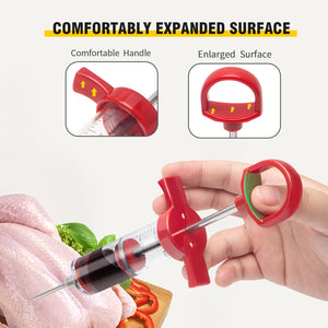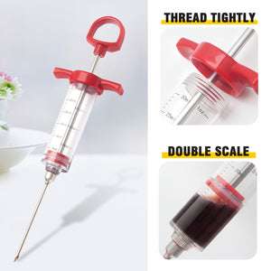 Meat Injector, Plastic Marinade Turkey Injector Syringe with Screw-on Meat Needle for Smoker BBQ Grill, 1-oz, Red, Recipe E-Book (Download PDF)