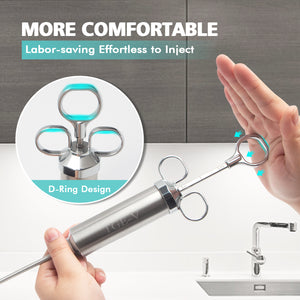 • “D-RING” Plunger Design--Meat injector with ergonomic design, use D-RING plunger, enlarge the pressure surface to makes you effortlessly and comfortable